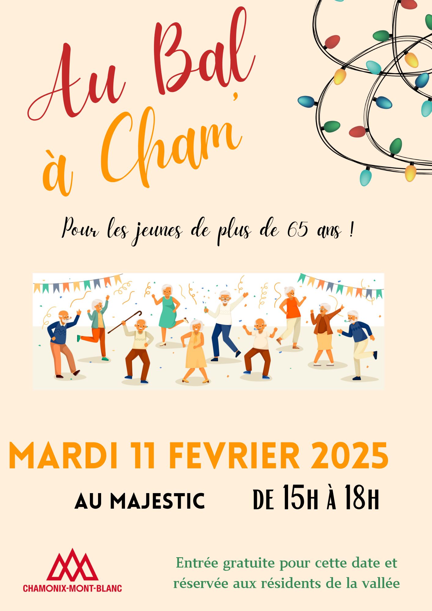 Venez vivre un après-midi de danse et de convivialité lors du bal dédié aux plus de 65 ans. Ce moment de partage et de bonne humeur se déroulera le mardi 11 février 2025 de 15h à 18h au Majestic à Chamonix.