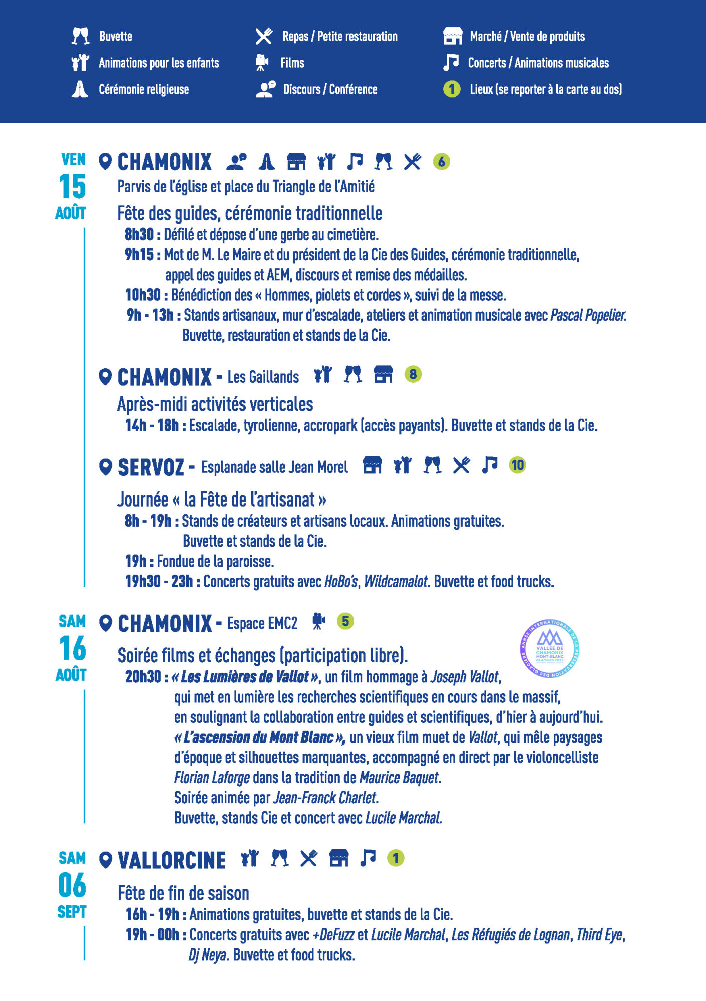📖 Programme complet : https://www.chamonix-guides.com/fr/nos-engagements/solidarite/fete-des-guides